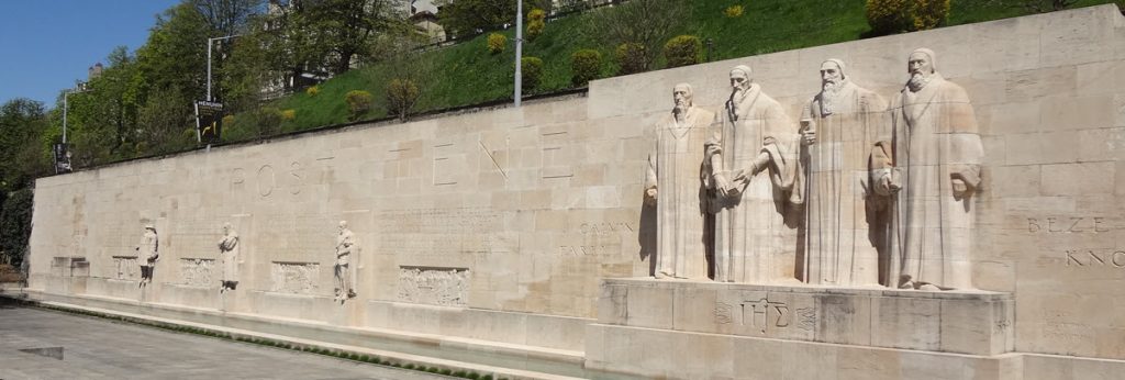 Reformation wall where Marie Dentière has her name inscribed. Photo is in public domain.